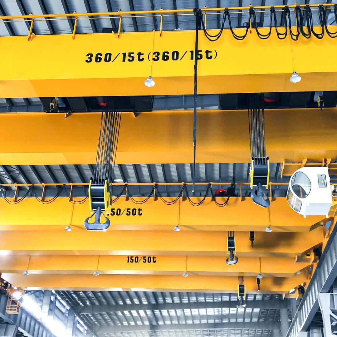 物料升降:各小車獨(dú)立的起升機(jī)構(gòu)通過鋼絲繩帶動(dòng)吊鉤實(shí)現(xiàn)垂直起降 (Z 軸)