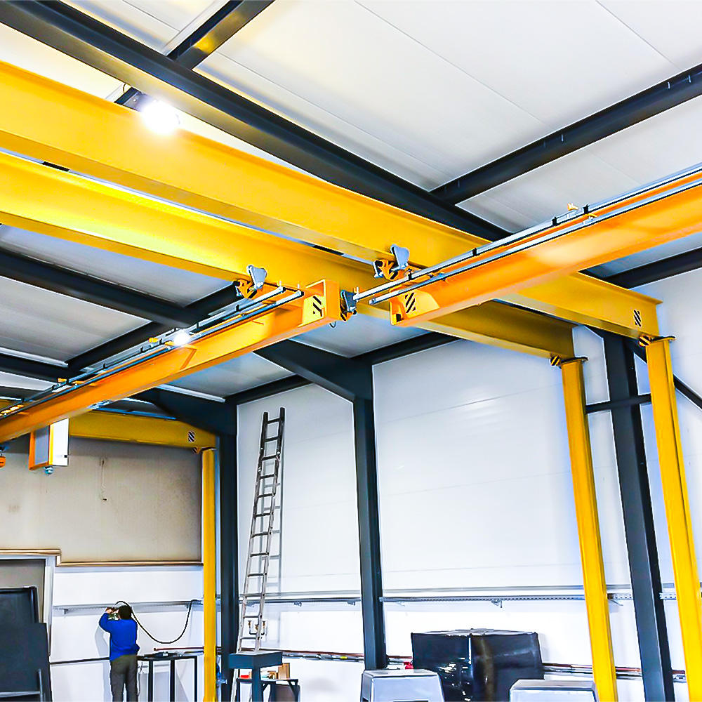 本產(chǎn)品屬組合設備,它是由動葫蘆小車、電動雙梁懸掛起重機(主車)、(手)電動單(雙)梁懸掛起重機(副車)和過軌裝置組成。