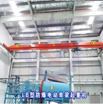 是在LD型電動單梁起重機的基礎(chǔ)上,根據(jù)GB3836.1-2000及GB3836.2-2000標(biāo)準(zhǔn)設(shè)計而成,整機與HB(BCD)HBS(BMD)型防爆電動葫蘆配套使用,是適用于易燃、易爆環(huán)境的單梁起重機,是一種輕小型起重機械